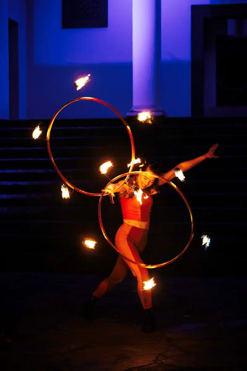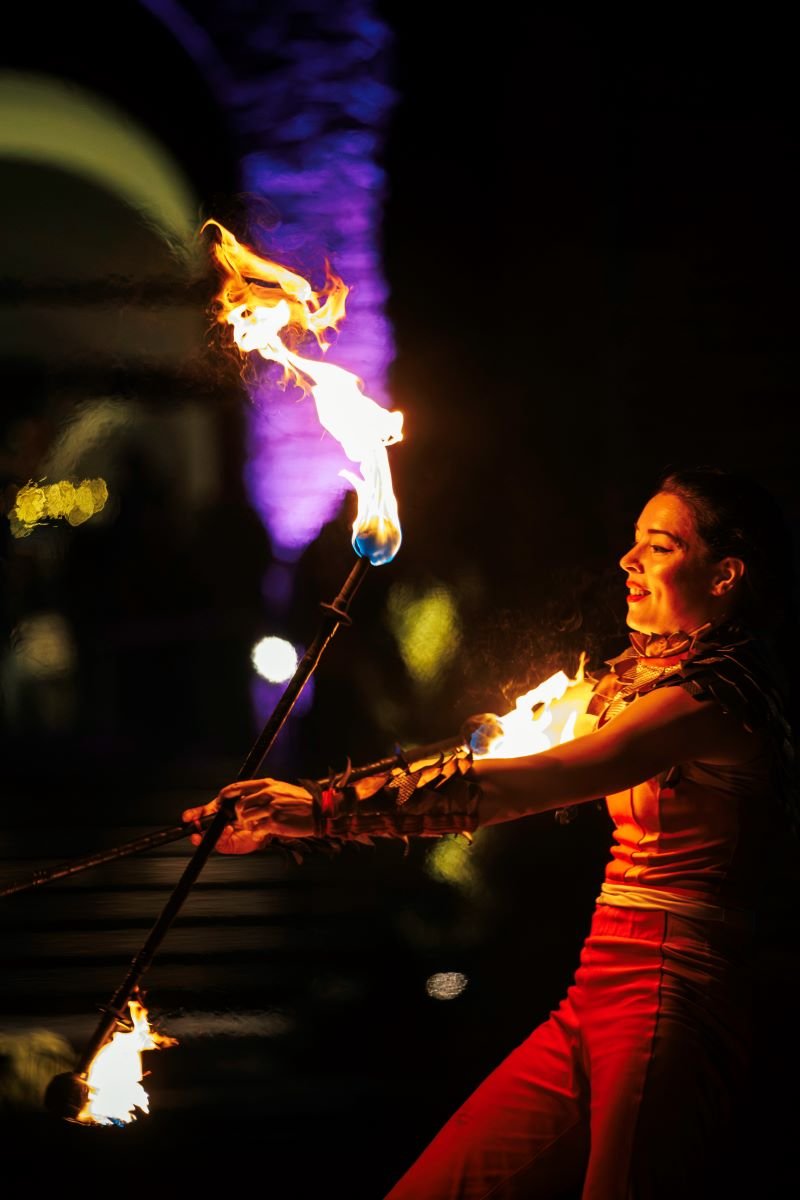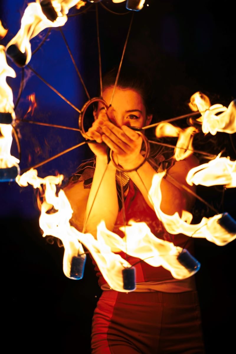 Van dans met vuurwaaiers en vuurhoepels tot vuurzwaarden en staffs: elke act is zorgvuldig samengesteld om spanning en magie te creëren.